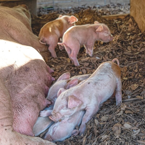 Taylor animals are fed an organic mix from Modesto Milling, along with grasses, acorns, weeds, grains, worms and insects found in the pastures. The ranch isn’t certified organic but follows organic practices. (Many farms avoid the organic certification process due to the costs involved.)