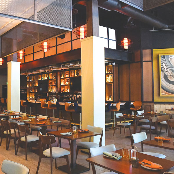 Field-N-Flame’s bar, with a dizzying range of potables, brings together big city intensity with communal capacity. Wines from around the world—from Italy and Spain to California—fill a solid wine list. The 20-foot-tall liquor cabinet holds enough spirits to confuse a mixologist. And an impressive lineup of mostly local beers creates an enjoyable spot to hang.