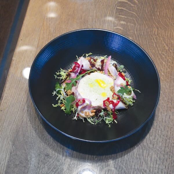 A gorgeous charred octopus over gnocchi is framed by zigzags of squid ink in a bed of Calabrian chili aioli. The beet salad uses every hue of the beet rainbow, like a color theorist’s palette. It’s a work of art.