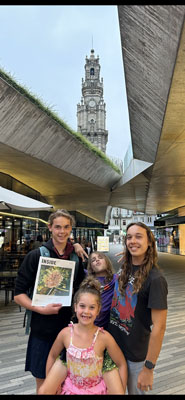 Lily, Zach, Mari and Gigi Turpen at the azulejos-tiled train station dating back to 1864 in Aveiro, Portugal.
