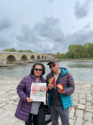 Edita and Ramon Nazareno at Stone Bridge spanning the Danube River in Regensburg, Germany.
