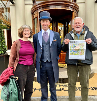 George and Eileen Nyberg with the doorman at The Shelbourne hotel in Dublin, Ireland.
