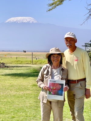 Davida and Richard Leong on safari near Mount Kilimanjaro in Tanzania.