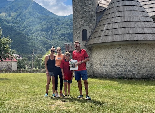 Sam, Sunny, Van and Eric Schranz in the town of Theth in the Albanian Alps.