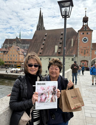 Kathy Menda and Colleen Lopez on the Stone Bridge in Regensburg, Germany.