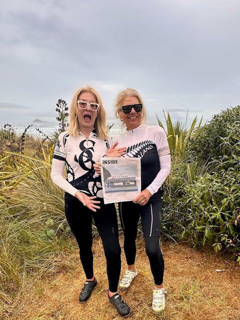 Lela Bayley and Debra Lebish cycle near Invercargill, South Island, New Zealand.