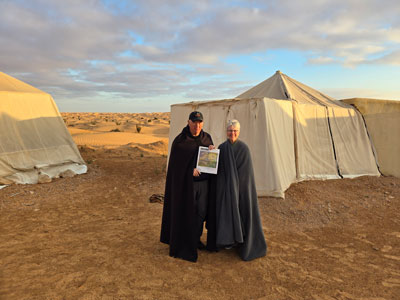 Kathy and Andy Kingsbury in the Sahara Desert in Tunisia.